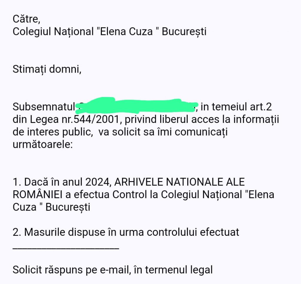 Șeful ISMB de la acea dată, **Vlad Florentin Drinceanu**, a refuzat să o cerceteze disciplinar pe directorul Tică Carmen. Ulterior, Inspectorul ISMB **Daniela Bădescu** a continuat aceeași linie, ignorând hotărârile judecătorești care au confirmat nerespectarea Legii 544/2001 și care au constatat că o profesoară a Colegiului a **încălcat un Ordin de Protecție** și a fost obligată să **restituie o sumă de bani**.